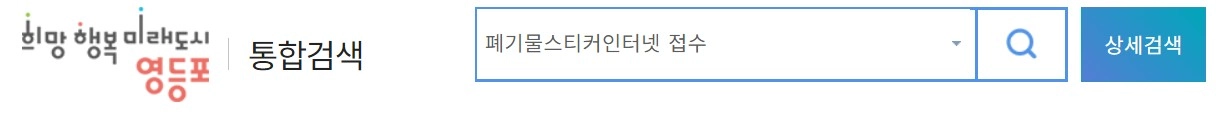 2. 해당 거주지구청 홈페이지에 접속하면 상단의 검색창에 폐기물 스티커를 입력하고 검색을 해주세요.