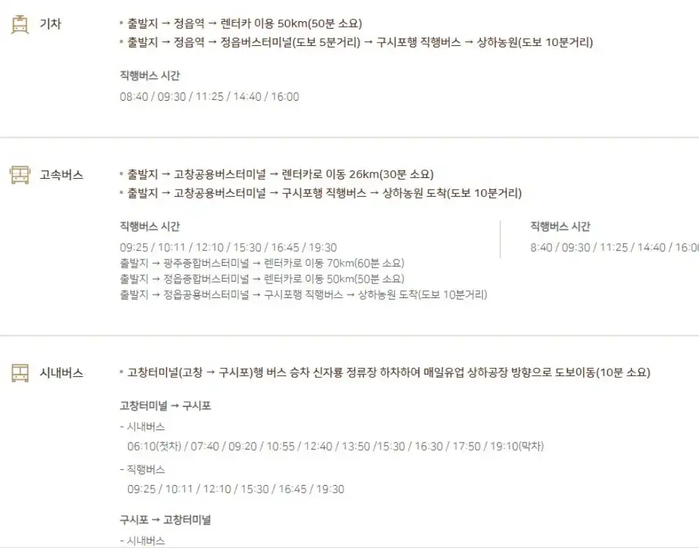 고창군주민 50%할인, 영광/광주/정읍/전주 주민은 30%할인 |