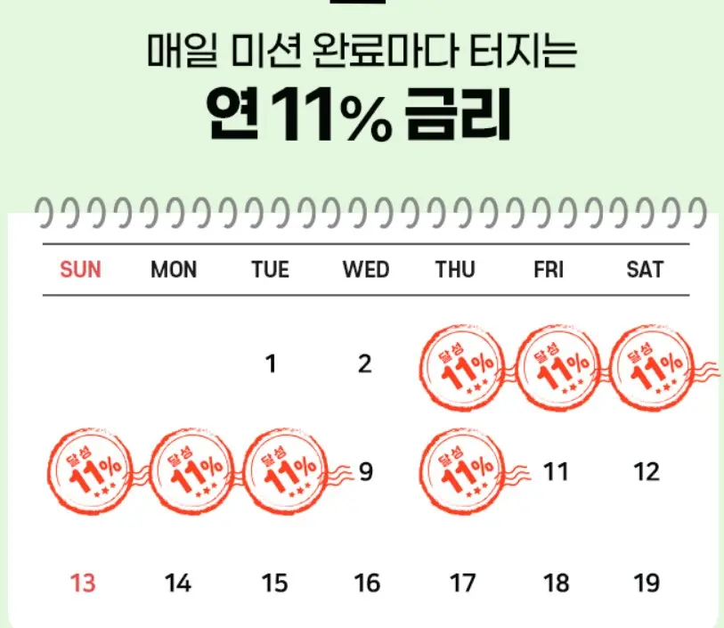 무려 연 11% 이자를 받을 수 있는데요. 매일 1만보를 걷는 조건을 충족하면 높은 이자를 받을 수 있습니다. 동기부여가 돼서 운동도 하고 높은 이자도 받을 수 있으니 무조건 가입하셔야 하는 상품입니다.