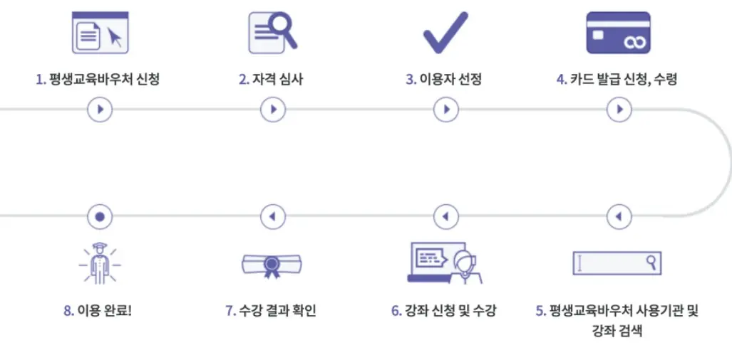 학습자가 본인의 학습 요구에 따라 자율적으로 학습 활동을 결정하고 참여할 수 있도록 정부가 제공하는 평생교육 이용권입니다.