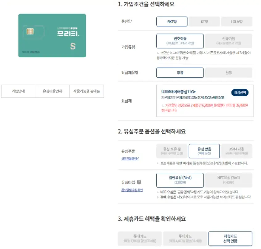 통신사 요금제유형 가입유형을 요금제선택을 하신 후에 유심주문에서 이미 유심이 준비되어 있기 때문에 유심보유 중을 선택해 주시면 됩니다.